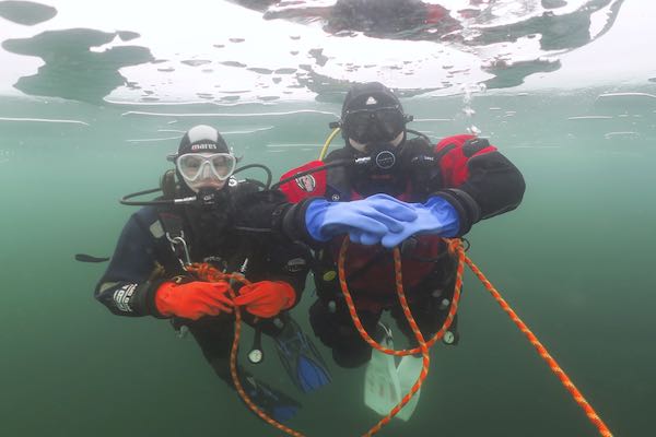 Eistauchen ist eine der abenteuerlichsten Tauchspezialitäten. Lernen Sie die Rollen und Verantwortlichkeiten von Hilfspersonal, Leinenführern und Sicherheitstauchern kennen. Sehen Sie Schönheit, die nur wenige andere jemals erleben.