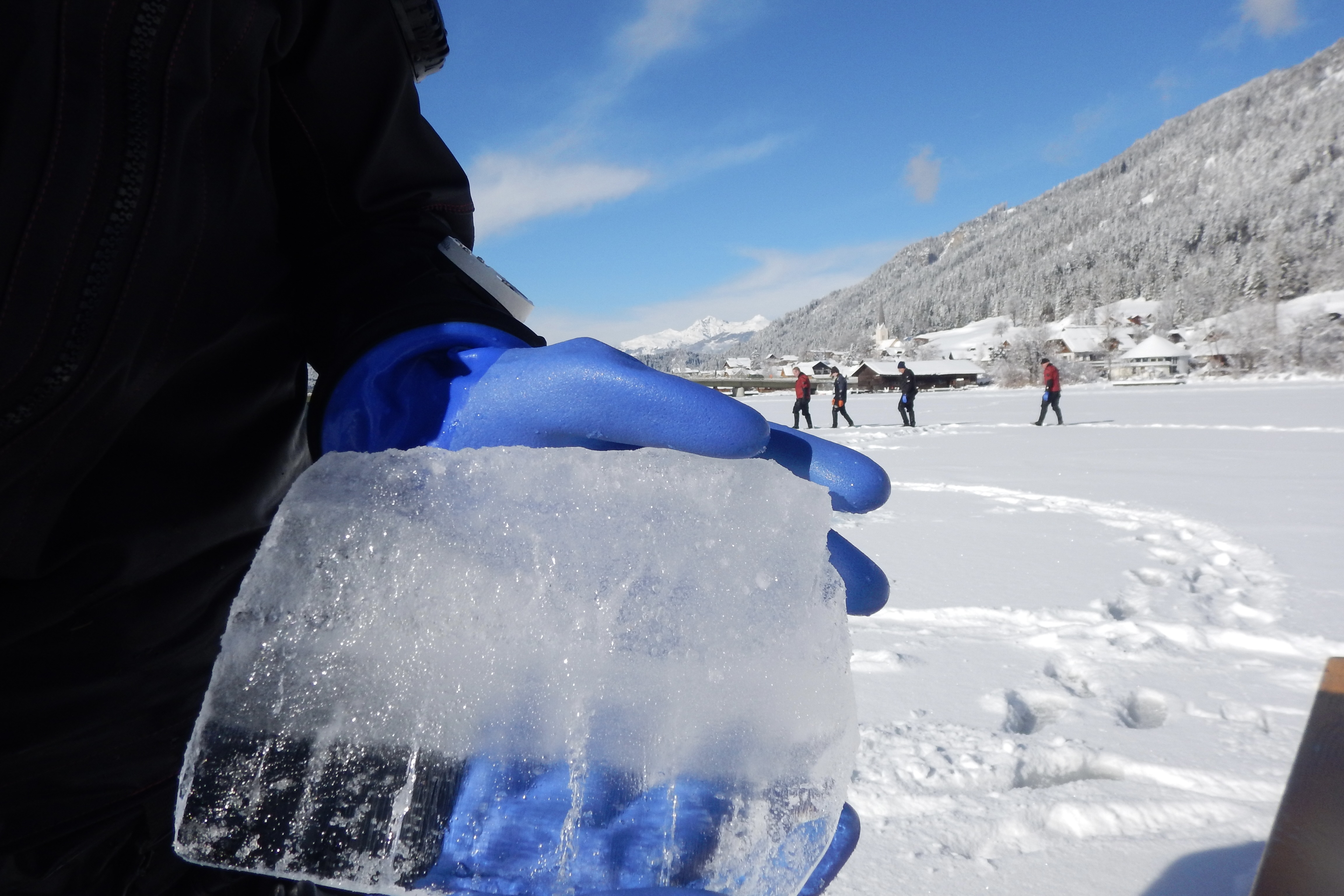 Der Weissensee liegt 930m über NN und ab Mitte Dezember bis Anfang März ist der See zugefroren. Eine bis zu 40 cm dicke Eisschicht zieht sich fast bis zum Horizont. Sie bietet einen nahezu grenzenlosen Spielplatz für Eisläufer, Winterwanderer und Eistaucher mit einer gigantischen Kulisse rundherum.