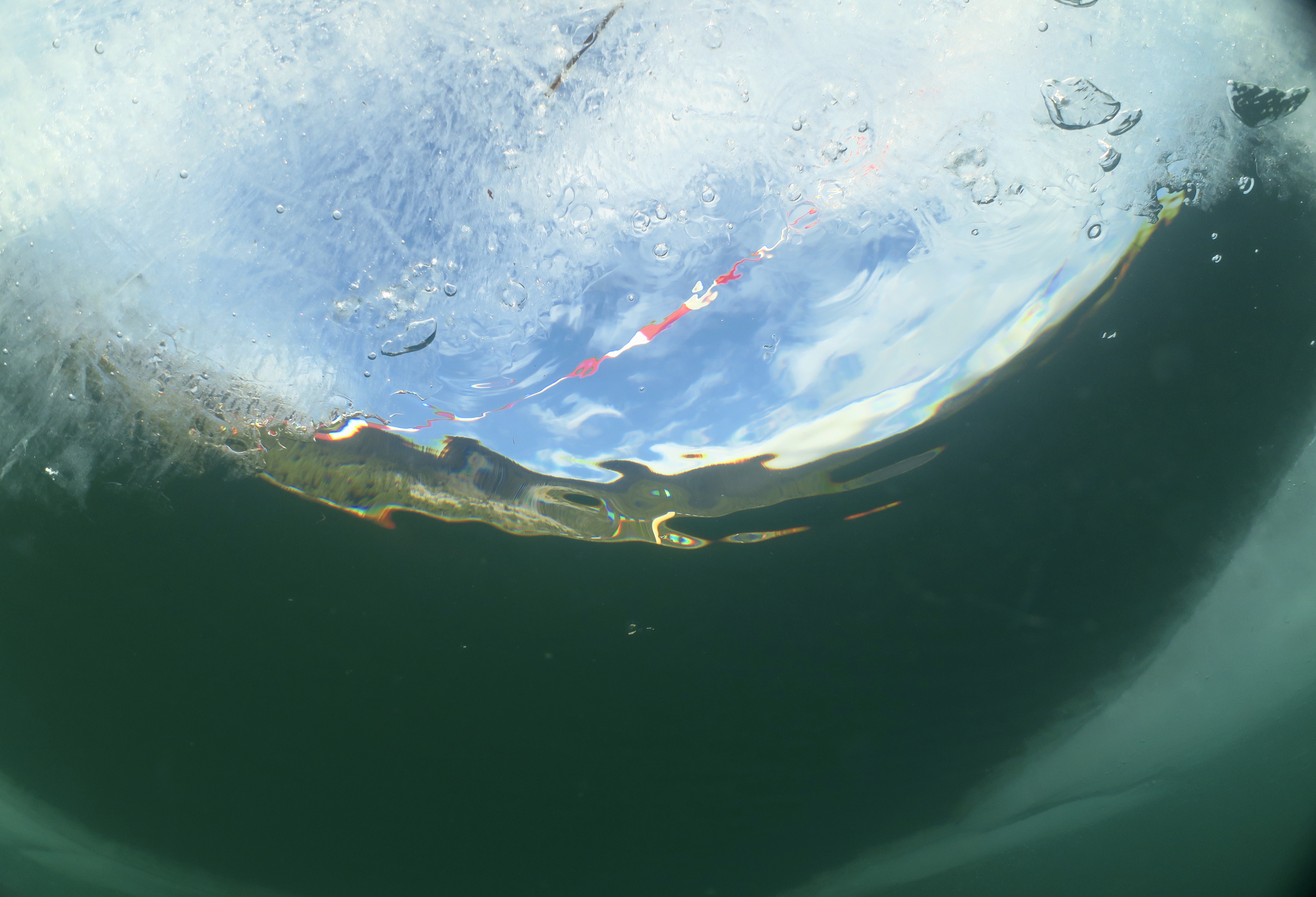 Ist das Dreieck gesägt und der Tauchplatz eingerichtet, starten je 2-3 Taucher an einer Sicherheitsleine ihren besonderen Tauchgang unter das Eis.